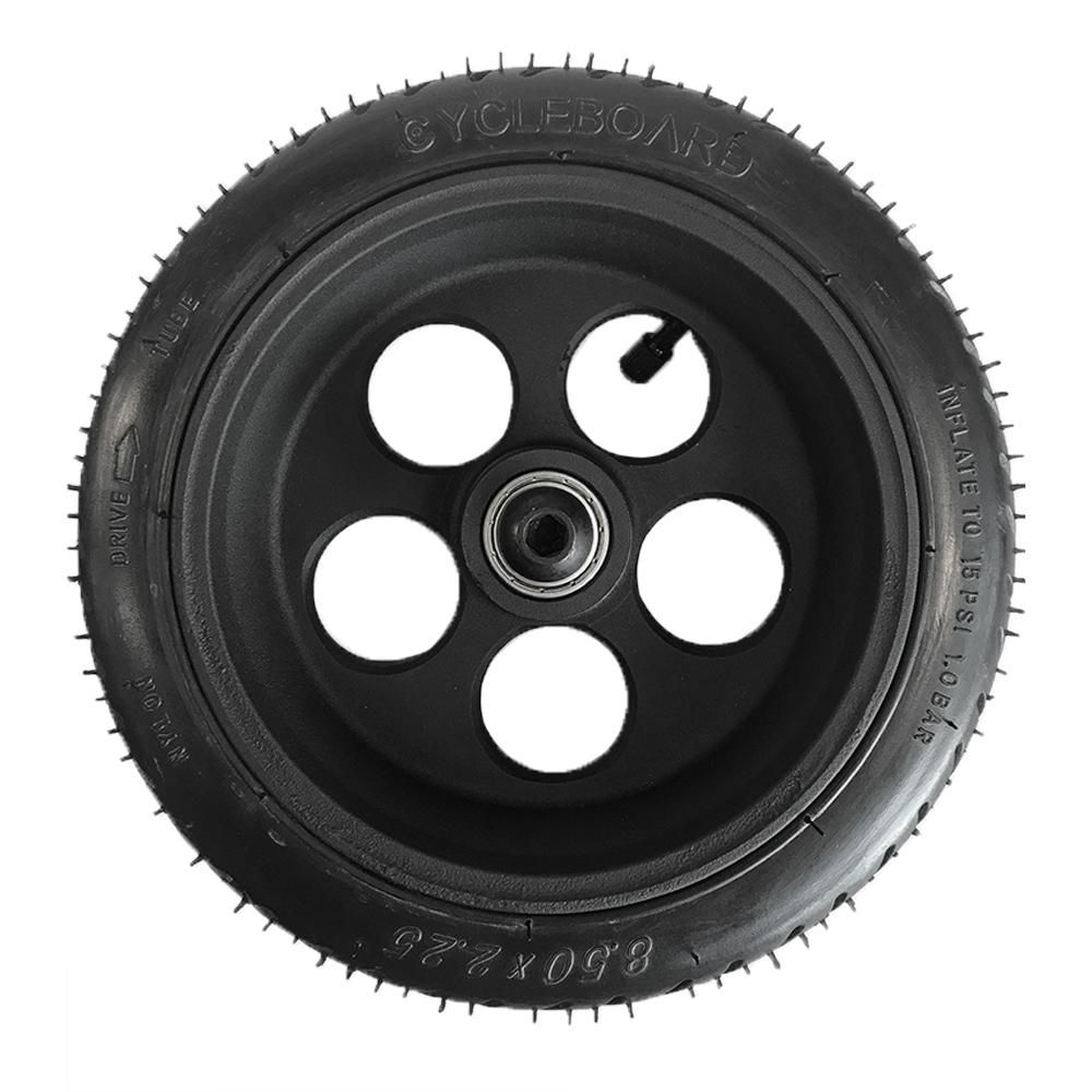 The CycleBoard Tire is a spare tire with street pattern compatible with the Elite, Elite GEN2, Elite Pro, & Elite Pro GEN2. The sizes of the tire are 21.6 x 5.7 cm (8.5" x 2.25") with a 72 durometer. The rim of the tire is made out of aluminum.